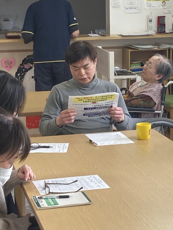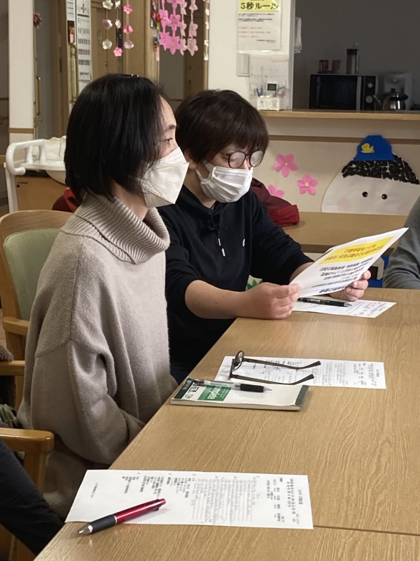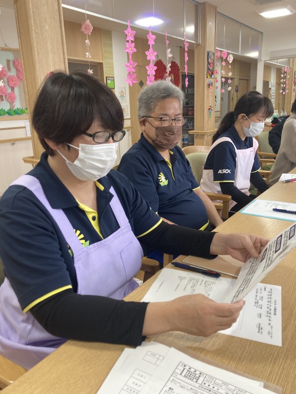 普段は笑顔の職員も真剣な表情です。いざという時のために毎月様々なことを皆でしっかり学んでいます。