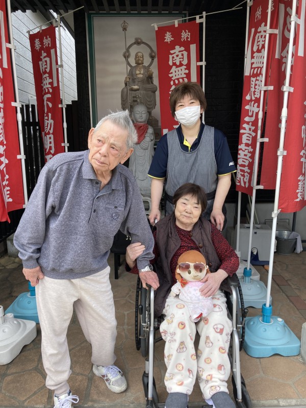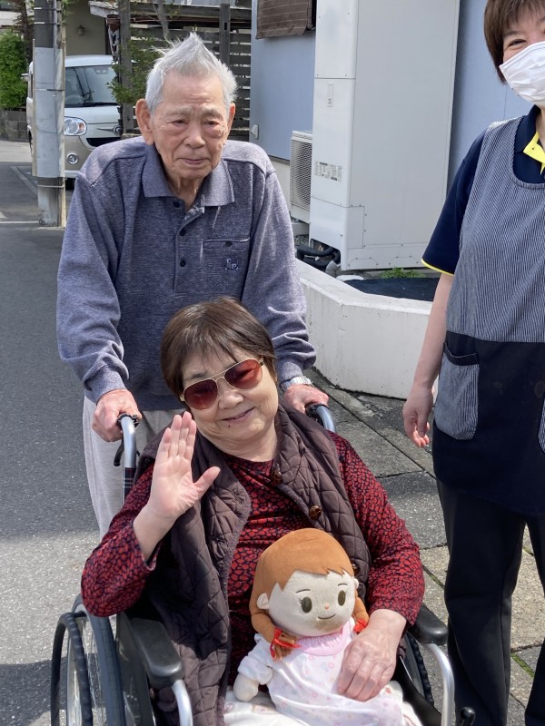 ご夫婦で入居されているご利用者様、思い出のサングラスをかけて職員とご夫婦一緒にお散歩に行って来ました(*☻-☻*)