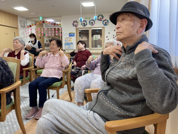 今日はヨガ体操の日です。皆さん手足をゆっくり動かしたり、吸って吐いて〜♪呼吸もしっかり意識します♡