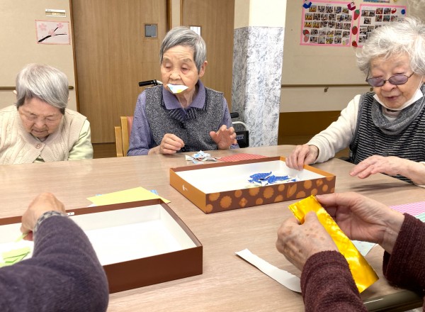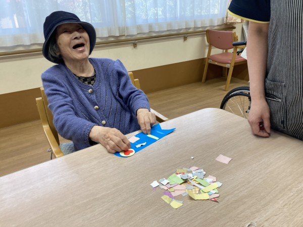 まずは、色とりどりの折り紙をちぎっていきます☆