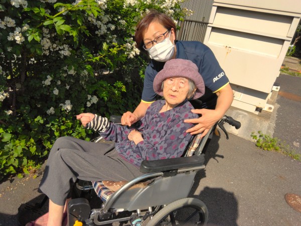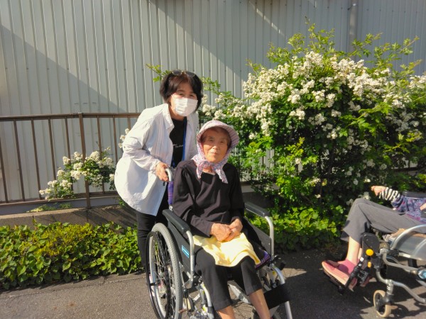 「お外の空気はいいですね。」、「これは何の花かしら。」などお話をしながら、ゆっくりと公園を見てまわりました!