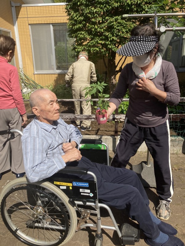 お元気な利用者様のお力も借りて 毎年小さな畑で