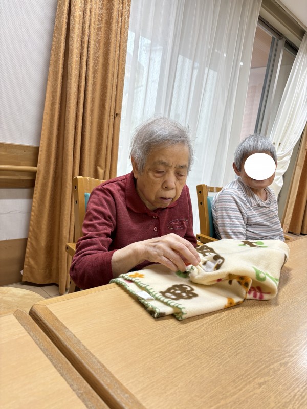 可愛いブランケットをご覧になり職員にお見せして下さるお母様♪
