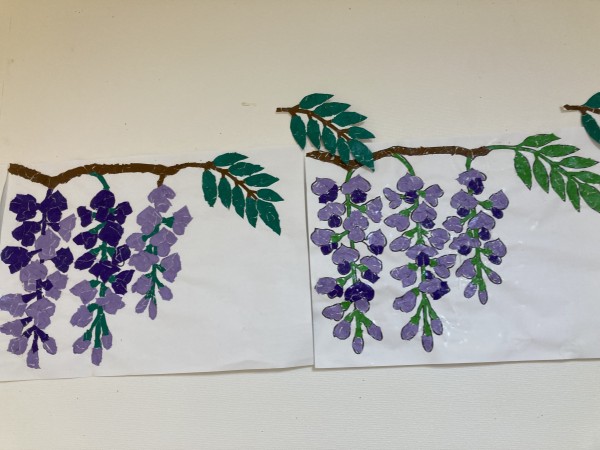 ★☆初夏の花「藤の花」貼り絵飾り付けレクリエーション2024年✨