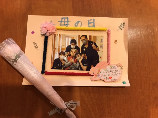今回のプレゼントはスタッフお手製の写真入れとカーネーション♪
