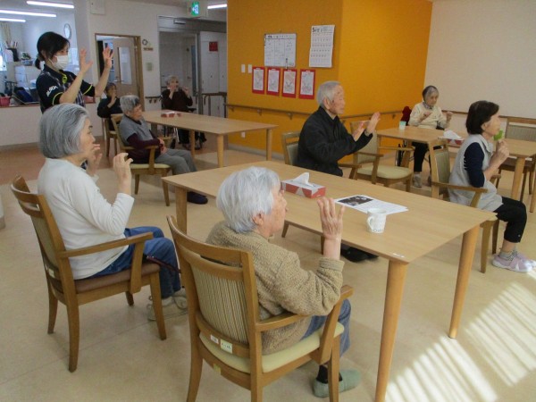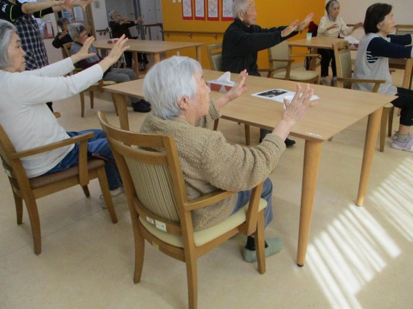 体操では、みなさん出来る範囲で体を動かしていました。