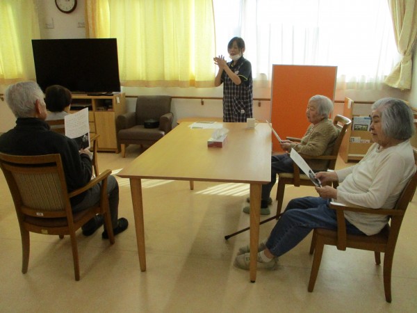本日は、おやつの前に、体操と合唱をしていただきました。