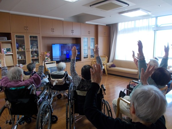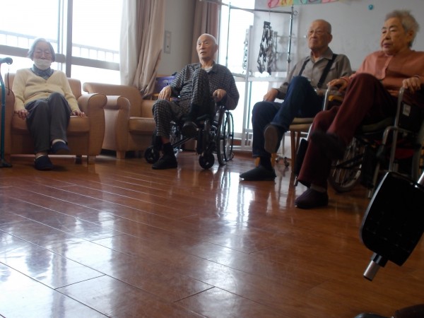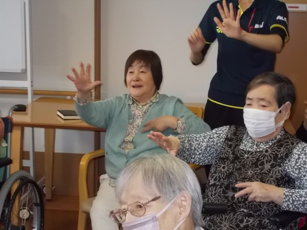 足上げも腹筋運動も完璧です。何より笑顔で参加していただきました。