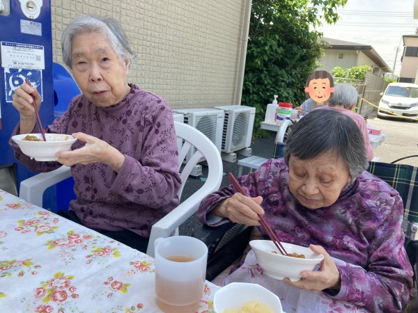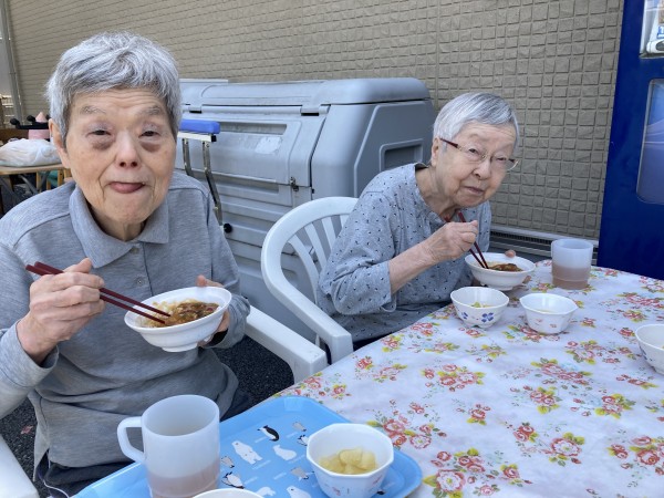 先日の2階フロアに続き、穏やかなお天気で気持ちいい日なので外でランチを召し上がっていただきました。