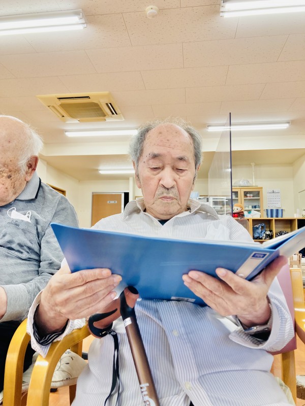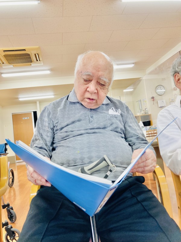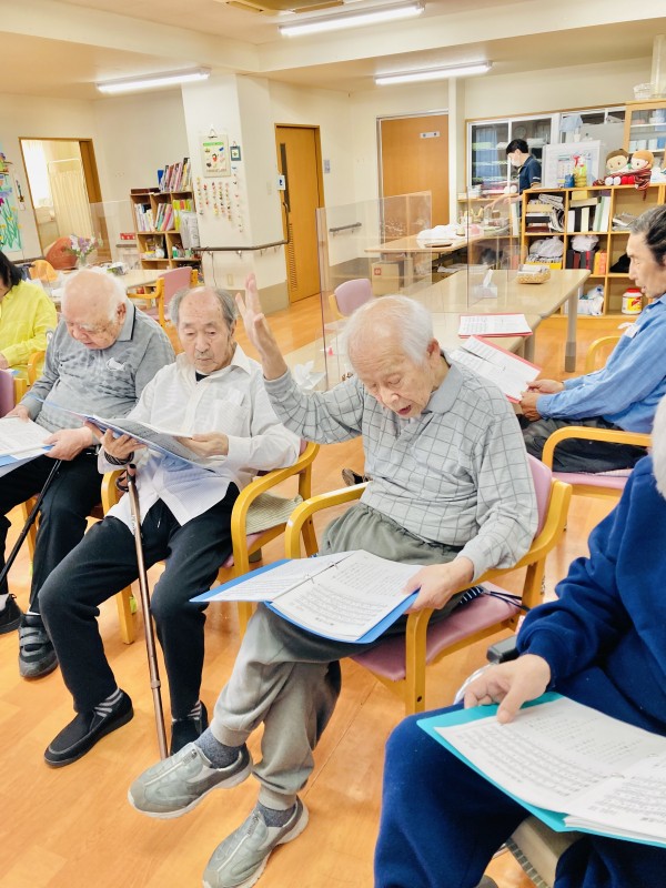 手でリズムを取りながら歌を歌っていました。1時間しっかり集中して取り組まれていました。