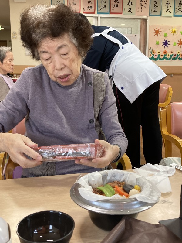 先月三保1のオレンジカフェでも行ったフラワーアレンジメントを三保2でも行いました。その日の昼食は出前昼食にしたのでその様子をお伝えしていきます