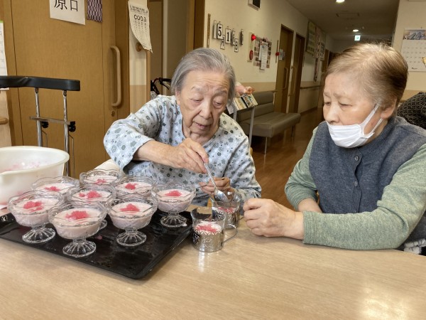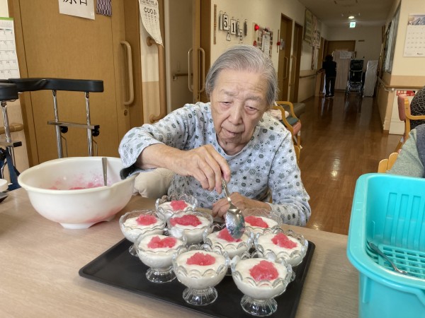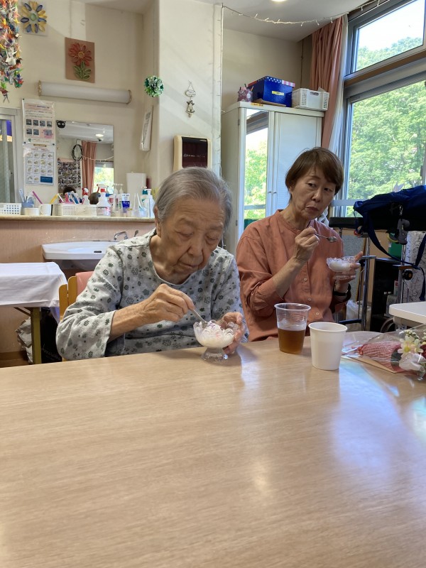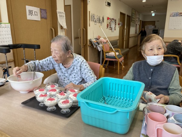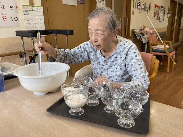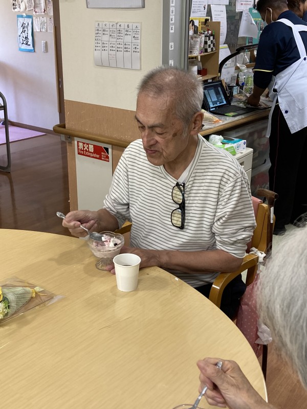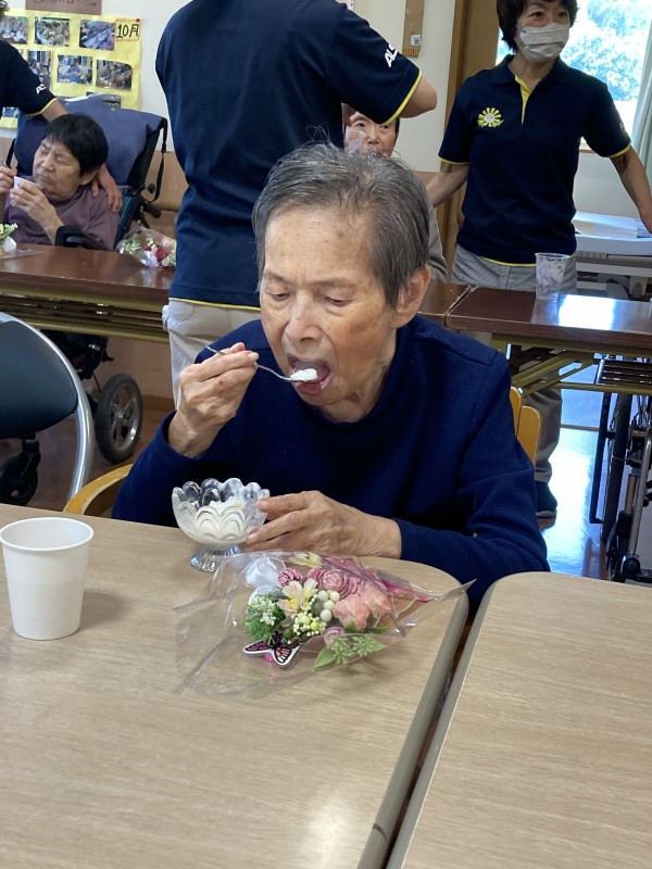 出前の昼食を終え、フラワーアレンジメント作りを楽しまれた後デザートをいただきましたのでその様子を伝えていきたいと思います。