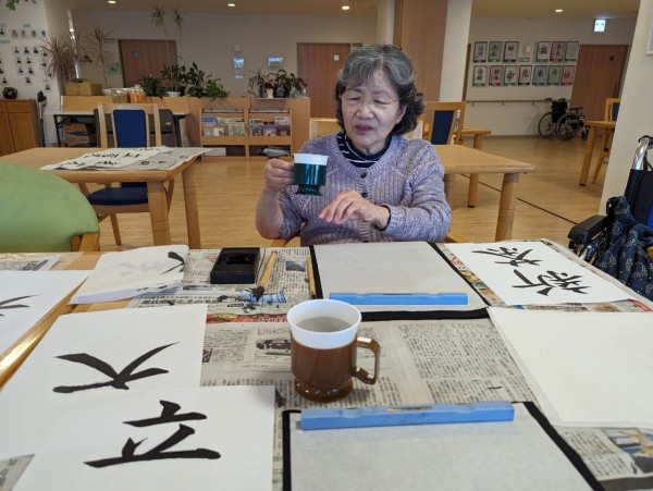 ひっそりとご入居者様と職員1名、書道を楽しみました。
