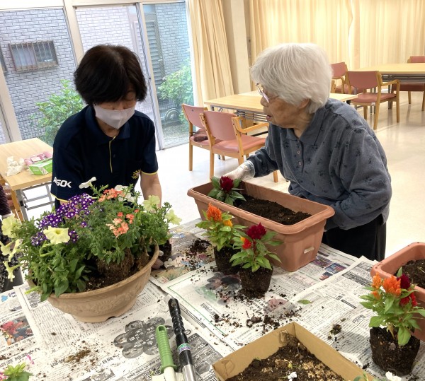 鉢とお花を選んで~。皆さん慣れたもので手際が良いです(^_^)v