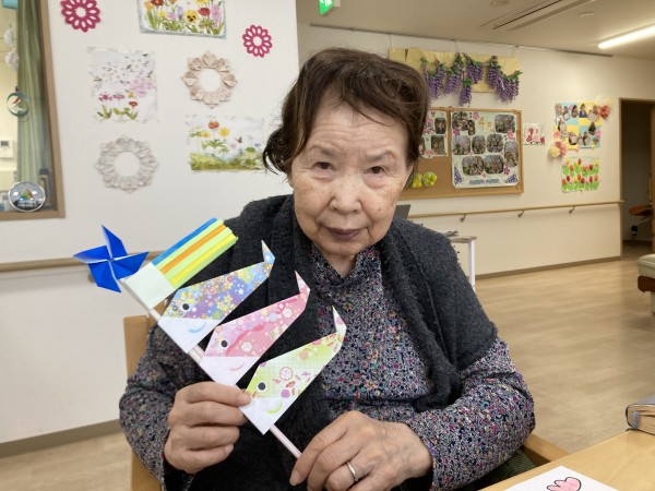 兜をかぶったり、こいのぼりで記念撮影をして季節を感じていただきました☀