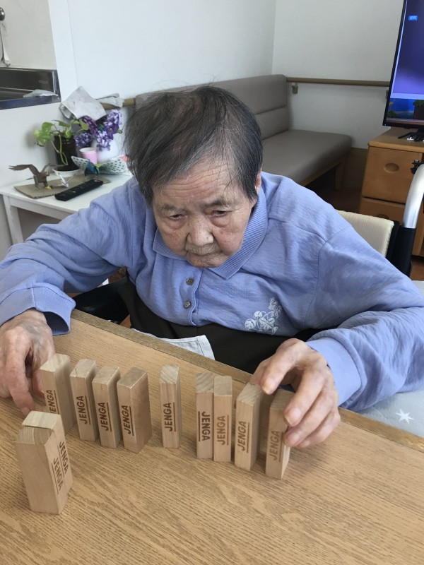今日のレクではジェンガの駒を使ってドミノ倒しにチャレンジ♪