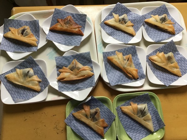 春巻きの皮の中にあんこを入れて揚げたおやつです。