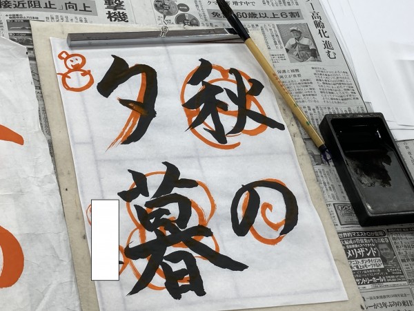 今回の書道教室の様子になります。皆様早速書いていますねー