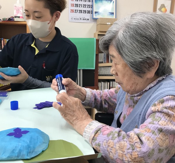 お花紙で作った土台に花びらを付けていきました♥