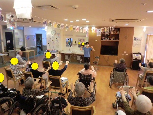 今回はタオルを使った体操の実施です。事前にチラシが配布されており地域の方でもご参加いただけるように手配されておりました。