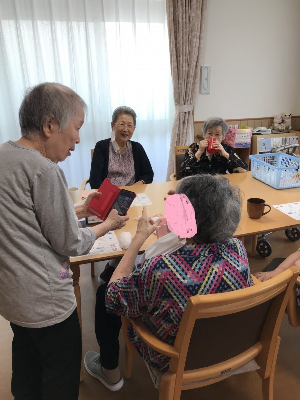 スマホを持っている他の入居者様に使い方を聞いたり、撮った写真を見せたり、とても楽しそうです☆