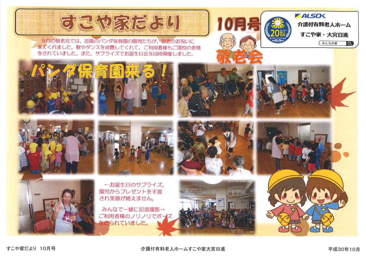 介護付有料老人ホームすこや家大宮日進の情報発信紙「すこや家だより10月号」