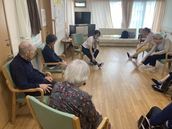 毎日、DVDにて体操をされるのが日課の皆様ですが、先生が傍に来て下さったので普段より一段とはりきり体操をされていました。
