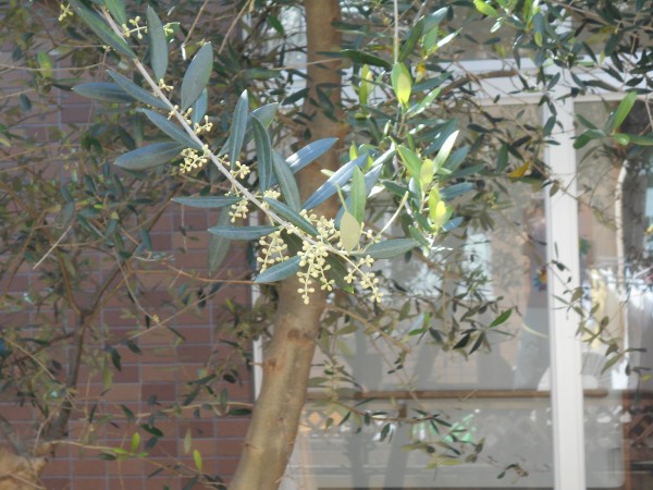 先日、ホーム中庭のオリーブの木が実を付けているのを職員が発見しました。