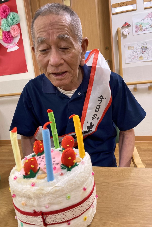 職員、ご利用者様でお誕生日ソングを歌い、お誕生日おめでとうございますの掛け声と一緒にお祝いしました♪