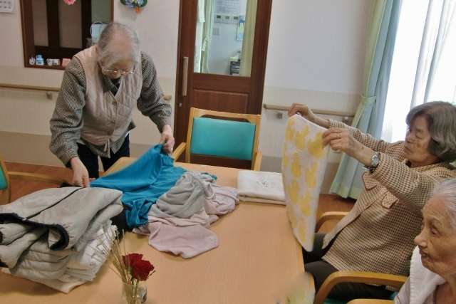 その様子を活発で話し上手な女性入居者様が見かけられ、「洗濯物をたたむのは、私にとっておいてね!」と、職員へ声を掛けて下さいました。