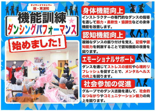 遊・東浦和では、機能訓練ダンシングパフォーマンスになんと新曲が追加されました!!v( ̄Д ̄)v イエイ