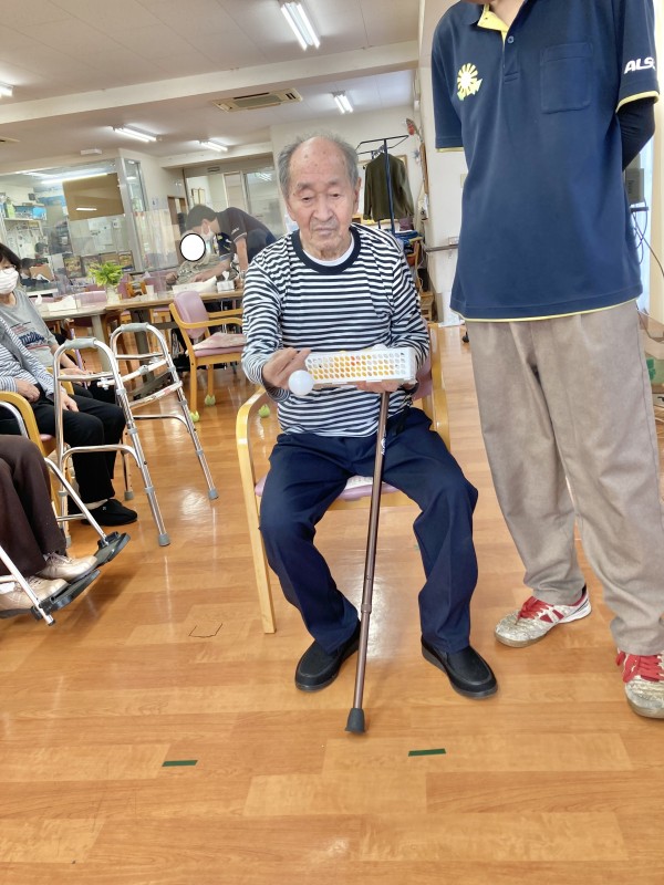 今日のレクは、ピンポンビンゴです。