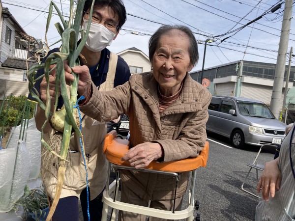 車いすの方は葉の根元に括り付けた紐を引っ張ってもらい収穫しました(^^)/