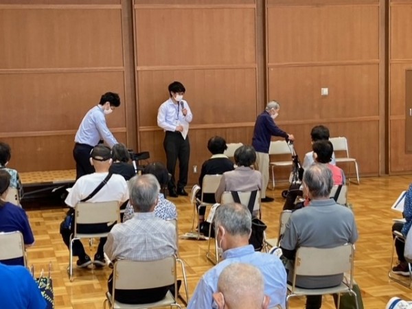 まずは福祉用具についての説明を行わせて頂き、実際に使っていただく体験の実施、その他体操前の休憩時間にも皆様に福祉用具を実際に触っていただきどのようなものかを知っていただく時間となりました!