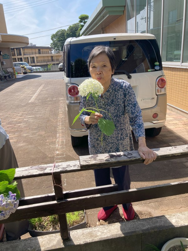利用者様をお誘いして 中庭の散策、、、