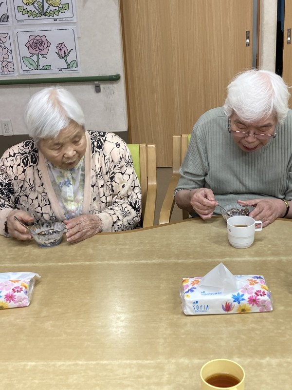 コーヒーゼリーとお茶で一息!おやつタイム!よくお喋りされたので喉が渇いたかな~?!
