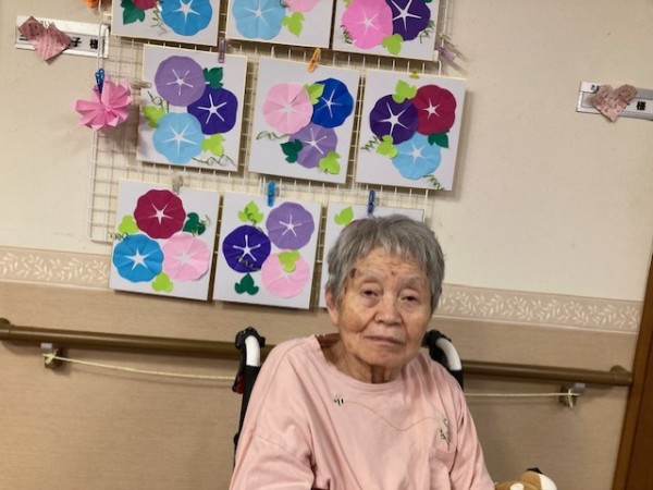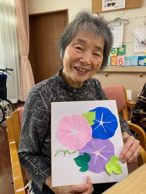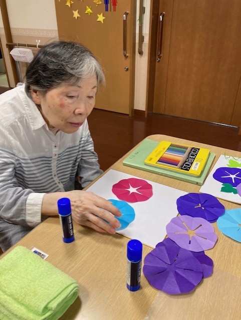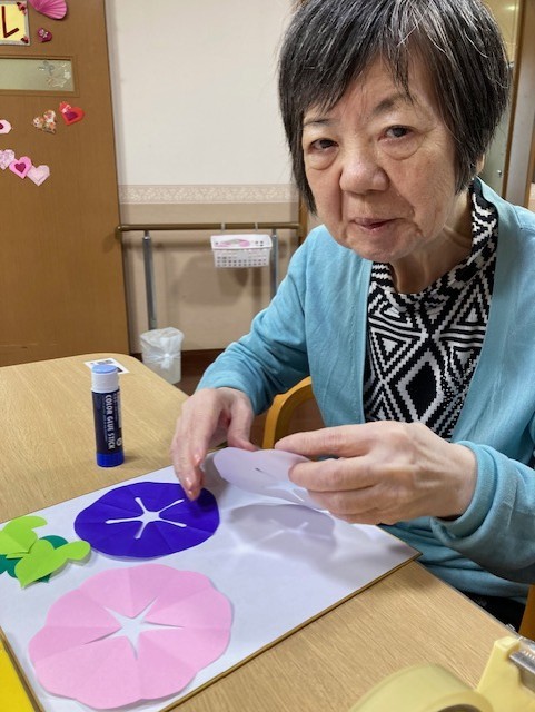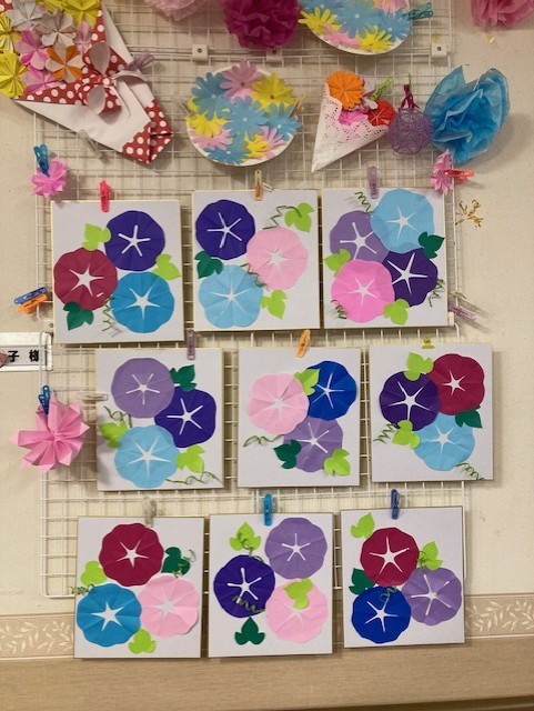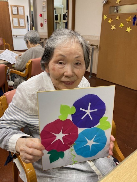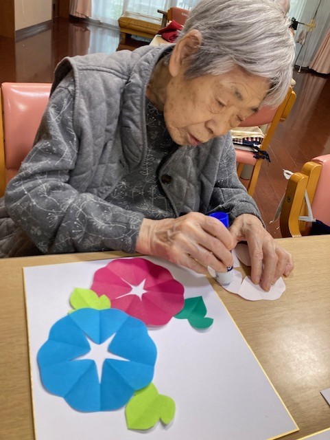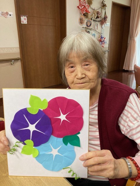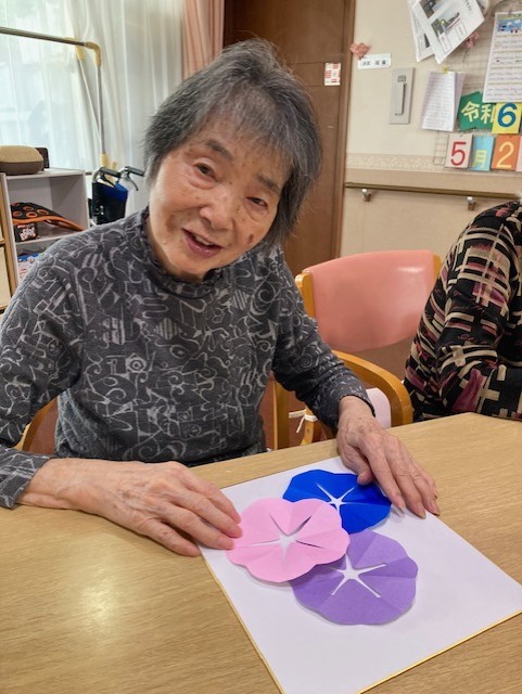 折り紙を切ってアサガオ作ってみました!