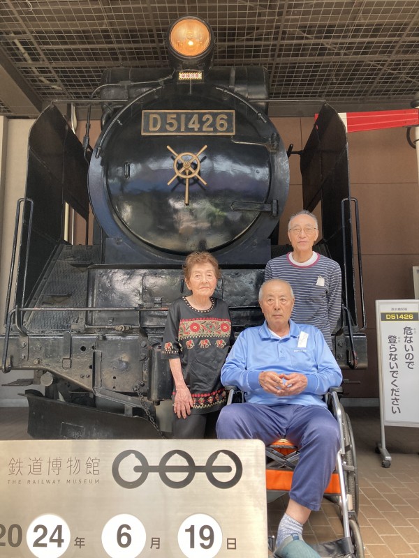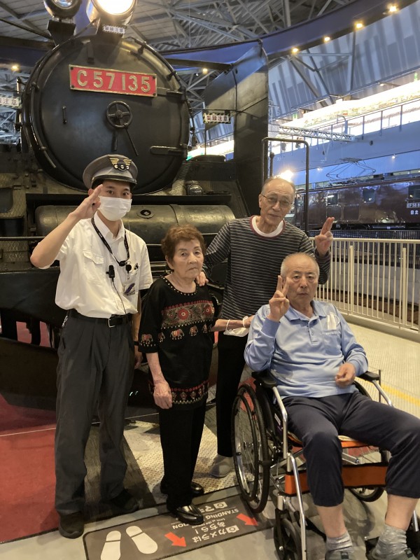 男性利用者様お二人は電車に興味深々で「連れてきてくれてありがとう」と仰り