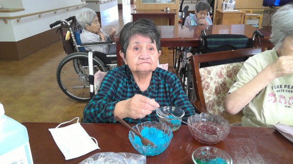 先日おやつ作りで6月に毎年恒例の紫陽花ゼリーというお菓子を作りました!