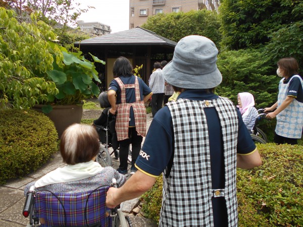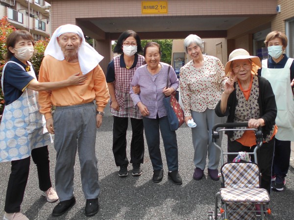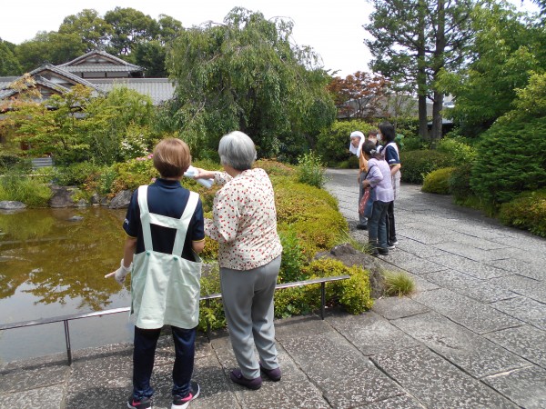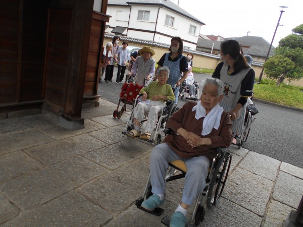 お散歩はお隣の観音寺さんへ…桜フロア、桃フロアとわかれて行きました(^^)/