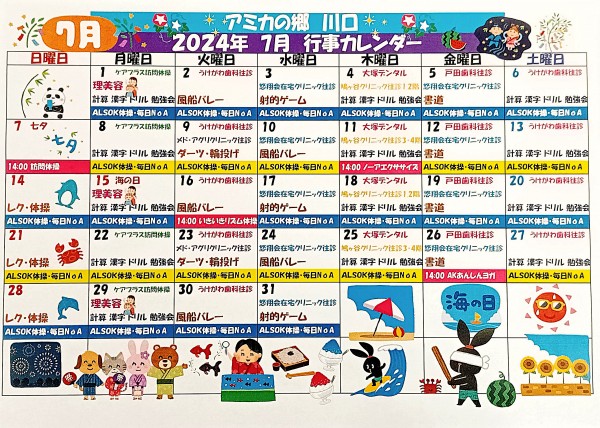 七月の行事カレンダーが出来上がりました(*^▽^*)