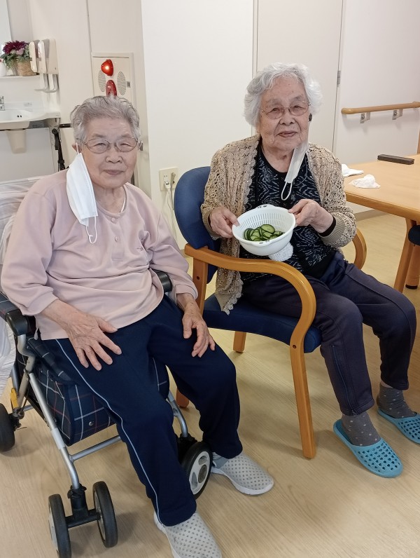 家庭菜園のキュウリを収穫して、塩漬けを作っていまぁす♪