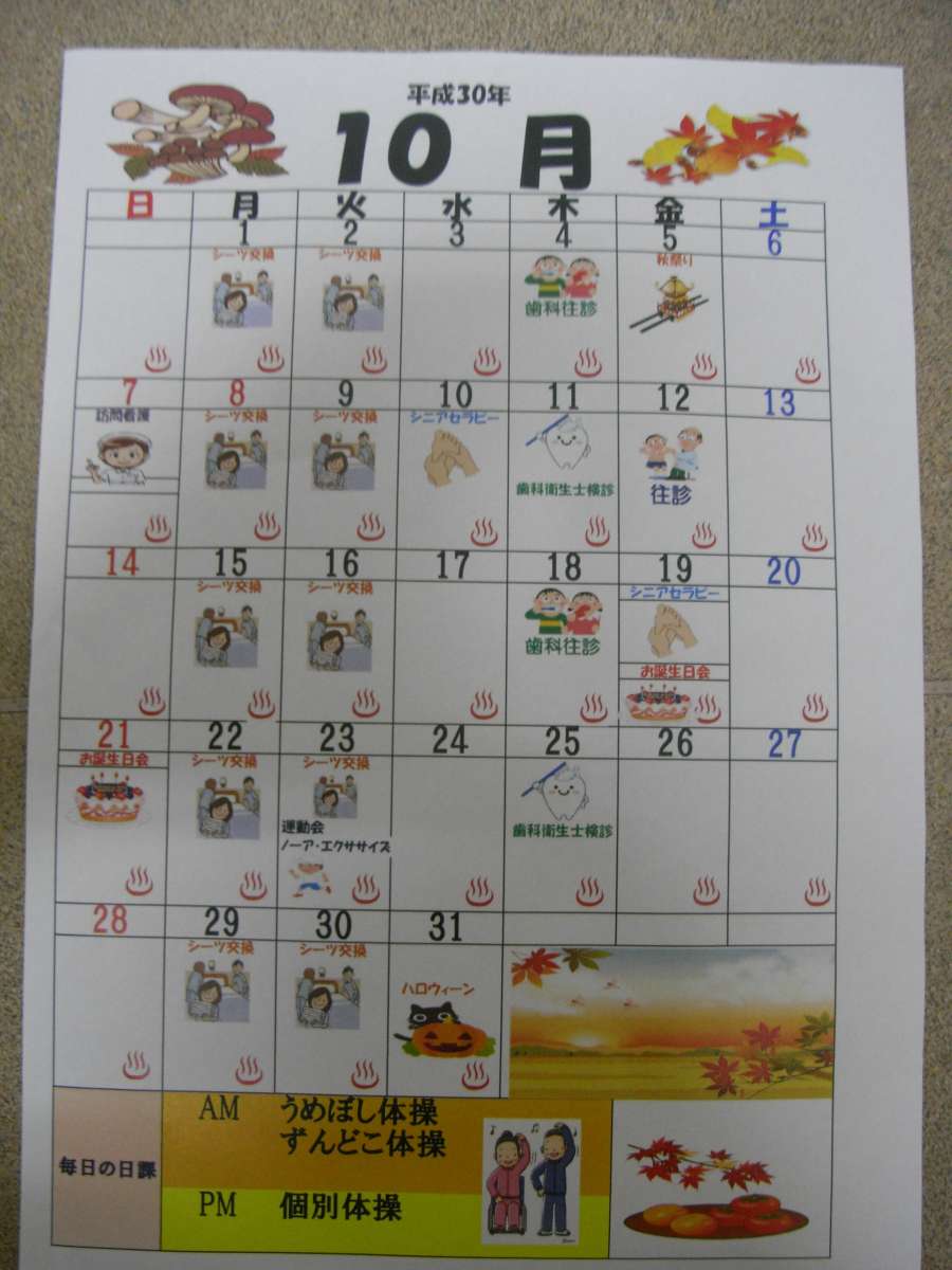 イベントだけでなく、シーツ交換や訪問診療の日も載っていますので