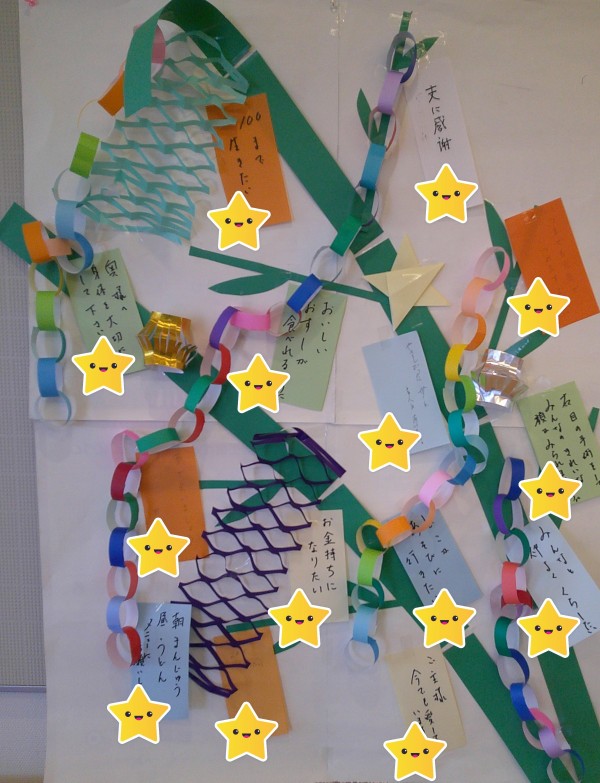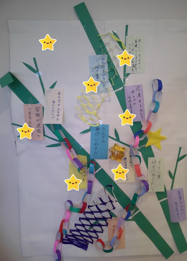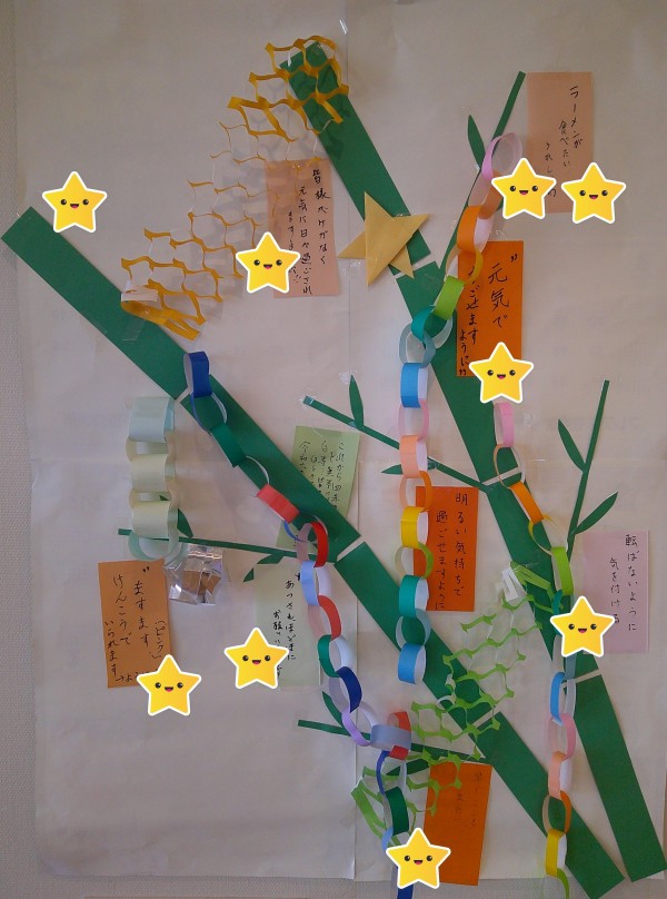 本日は、七夕ですね♪各階で笹にお願いを吊るしました。