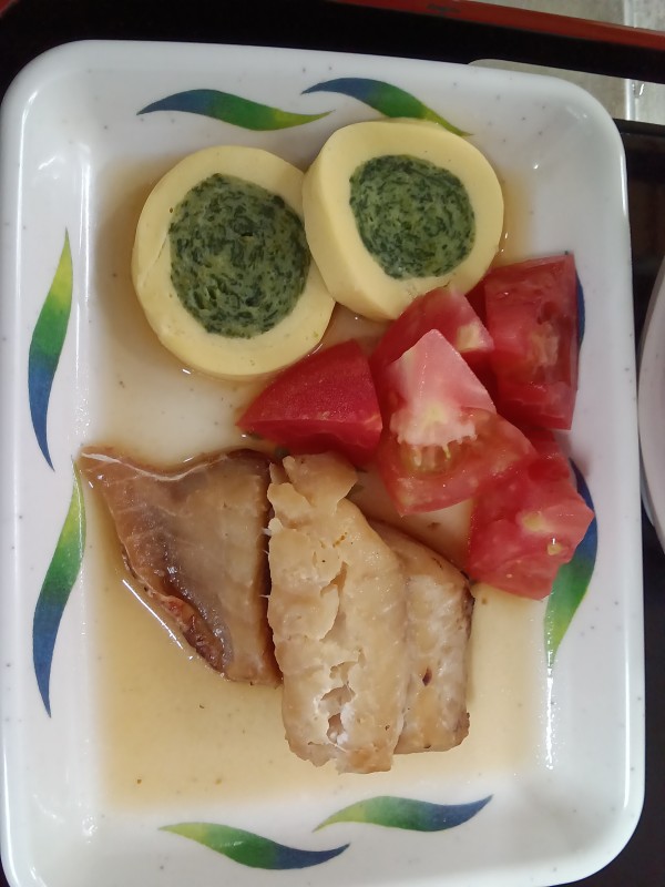 夕食のお供に赤いトマトを添えて皆さんと召し上がりました。