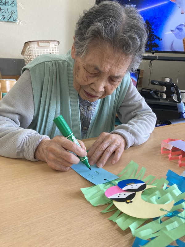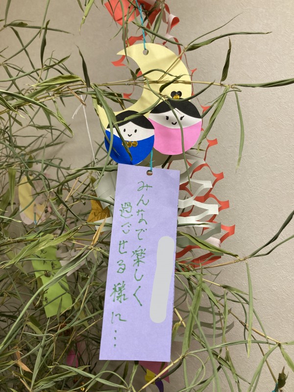 7月7日の七夕の日には利用者さんと一緒に短冊を作りました。