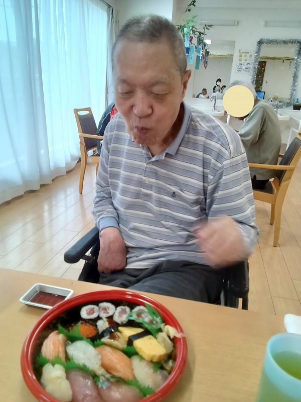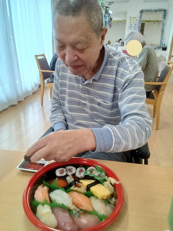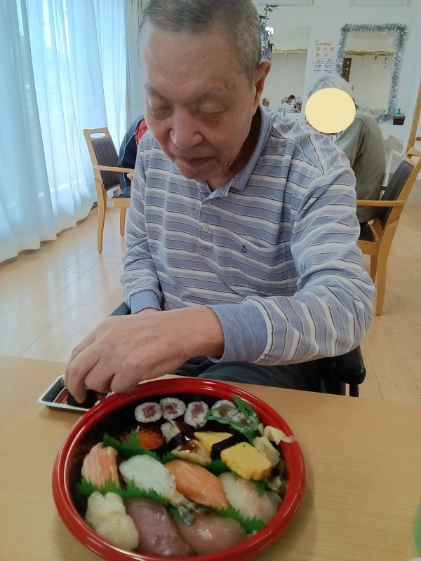 施設では、あまり食べれない特別に握り寿司本マグロ中トロが提供されました。