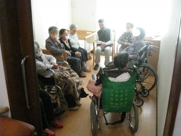 1階の皆さんも2階の窓際へ避難する訓練です。