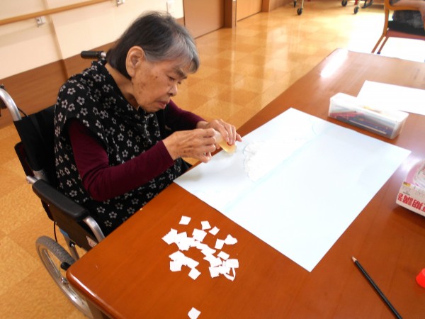 こちらのご利用者様、ちぎり絵のレクにお誘いをしてみたところ…すごく器用にちぎって貼られておりスタッフからも「おおー!」と声が(≧▽≦)