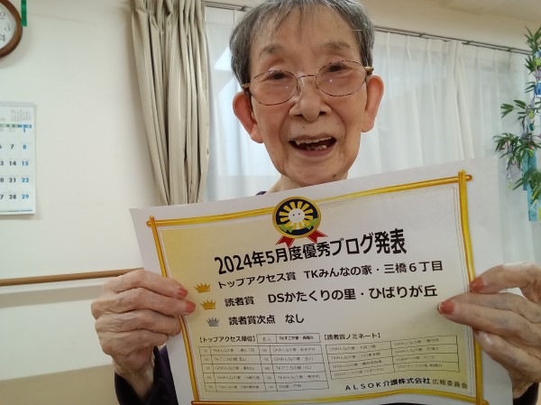 ★☆三橋6丁目のブログが『トップアクセス賞 』で表彰5月度優秀ブログ発表2024年✨ 『みんなの家 三橋6丁目 介護ブログ』☆★